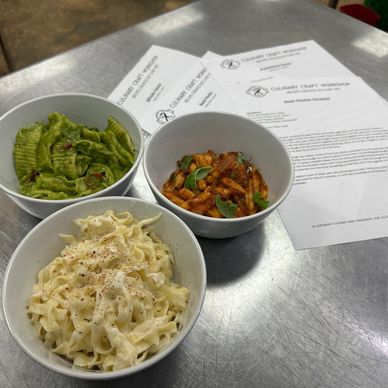 Chef will demonstrate Basil Pesto, Alfredo sauce, and Puttanesca sauce. Students are recommended but not required to take either the Handmade Pasta Class or the Ravioli Class before attending the Pasta Volume 2 Class.